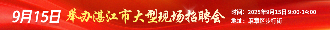 地址:湛江市赤坎區(qū)體育北路6號君臨世紀廣場5號樓2層02號商鋪 郵編:524000 郵箱:0759@0759job.com 中文網(wǎng)址:湛江人才網(wǎng).com