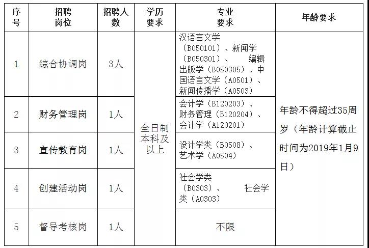 本次招聘崗位為創(chuàng)文工作人員,面向社會公開招聘,招聘人數(shù)7名,詳情見下表: